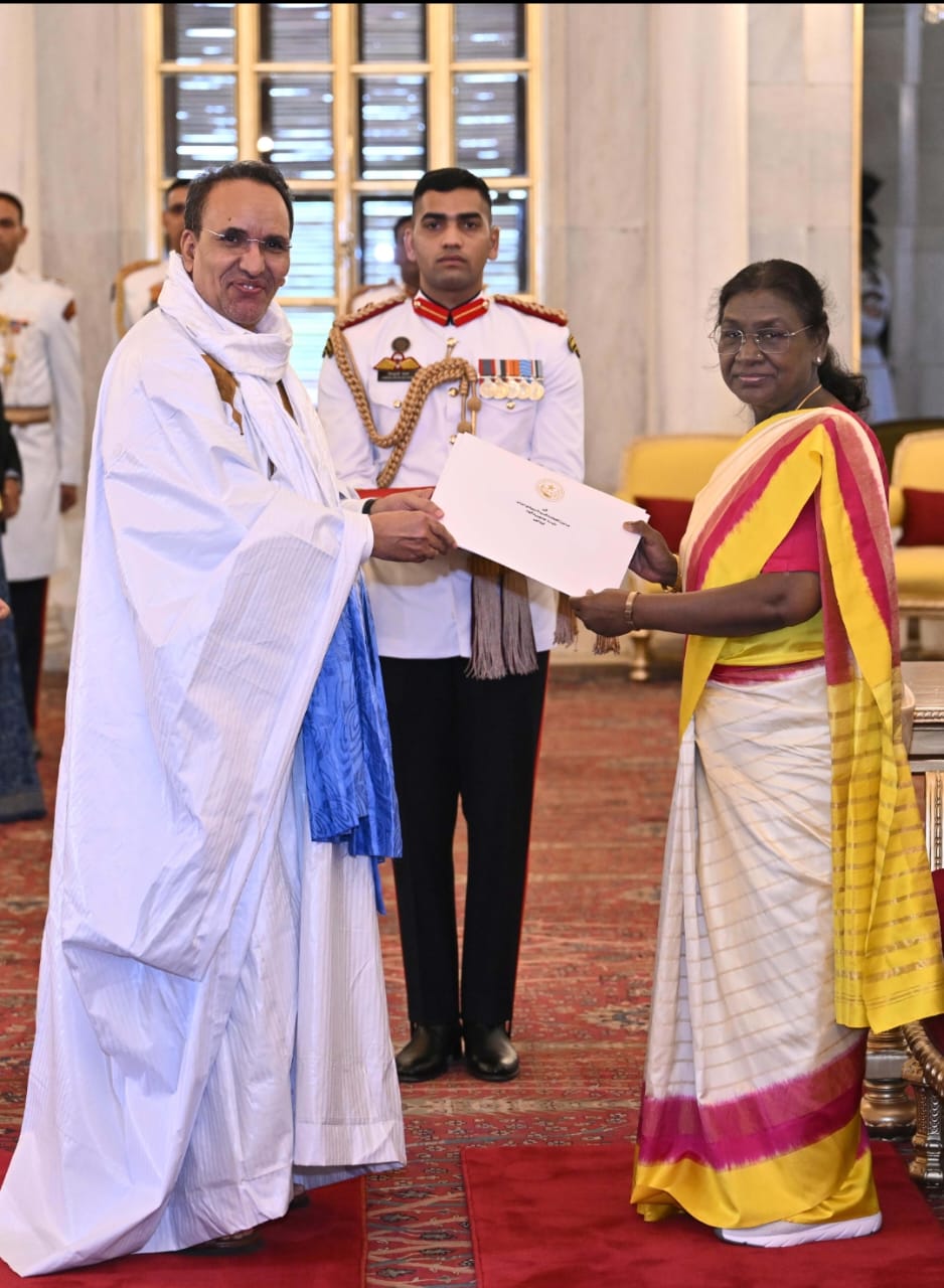 الأخبار (نواكشوط) – قدم السفير الموريتاني في الهند أحمدو ولد أحمدو أوراق اعتماده لرئيسة جمهورية الهند دروبادي مورمو، باعتباره سفيرا فوق العادة وكامل السلطة لموريتانيا في الهند.