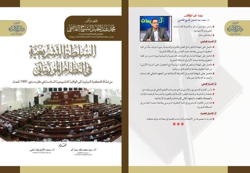 الأخبار (نواكشوط) – صدر حديثا عن دار الإسراء في مصر كتاب “السلطة التشريعية في النظام الموريتاني من نشأة الفكرة النيابية إلى الولاية التشريعية السادسة في ظل دستور 1991 المعدل”.