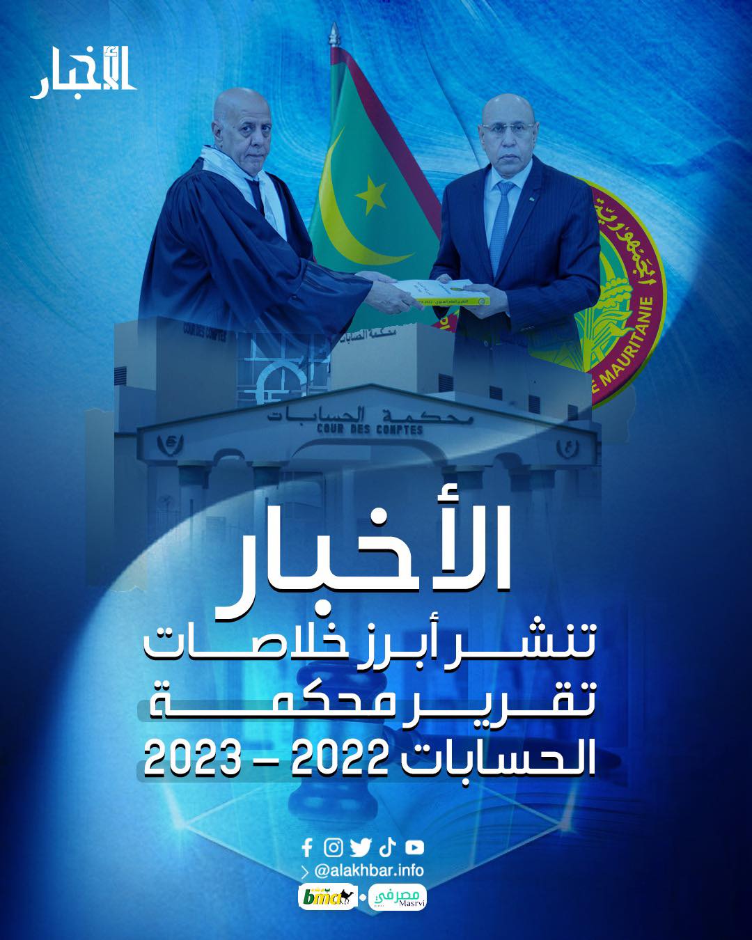 الأخبار (نواكشوط) – حصلت وكالة الأخبار المستقلة على نسخة من التقرير الصادر عن محكمة الحسابات، والتي سلم رئيسه احميده ولد أحمد طالب اليوم نسخة منه للرئيس محمد ولد الغزواني.