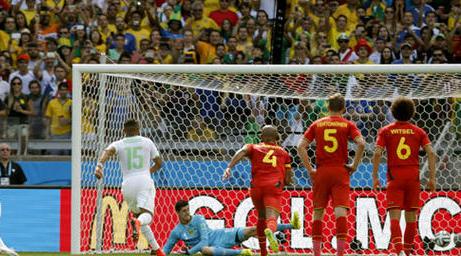 واستمرت سيطرة منتخب بلجيكا بعد هدف الجزائر، وحاولوا التعادل ولكن صلابة الدفاع الجزائري وقفت لهم بالمرصاد لينتهي الشوط الأول بتقدم الخضر بهدف نظيف.