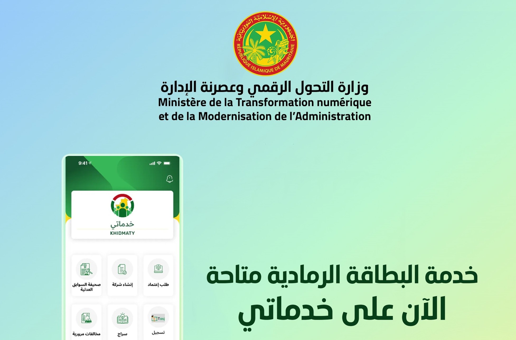 الأخبار (نواكشوط) أعلنت وزارتا التحول الرقمي وعصرنة الإدارة والتجهيز والنقل عن خدمة رقمية جديدة على بوابة “خدماتي” وتطبيق “هويتي”، تمكن المواطنين من إجراء مختلف معاملات البطاقات الرمادية باستخدام هواتفهم الذكية.