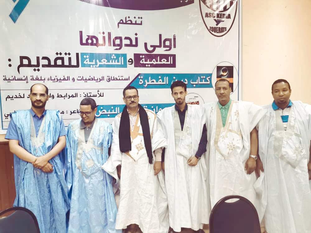 الأخبار (الزويرات) نظمت الرابطة الثقافية والرياضية التابعة لشركة سنيم ندوة علمية وشعرية لتقديم كتاب دين الفطرة ‘استنطاق الرياضيات والفيزياء بلغة إنسانية’ للأستاذ لمرابط ولد محمد لخديم وديوان تراتيل النبض للشاعر محمد محمود الساسي.