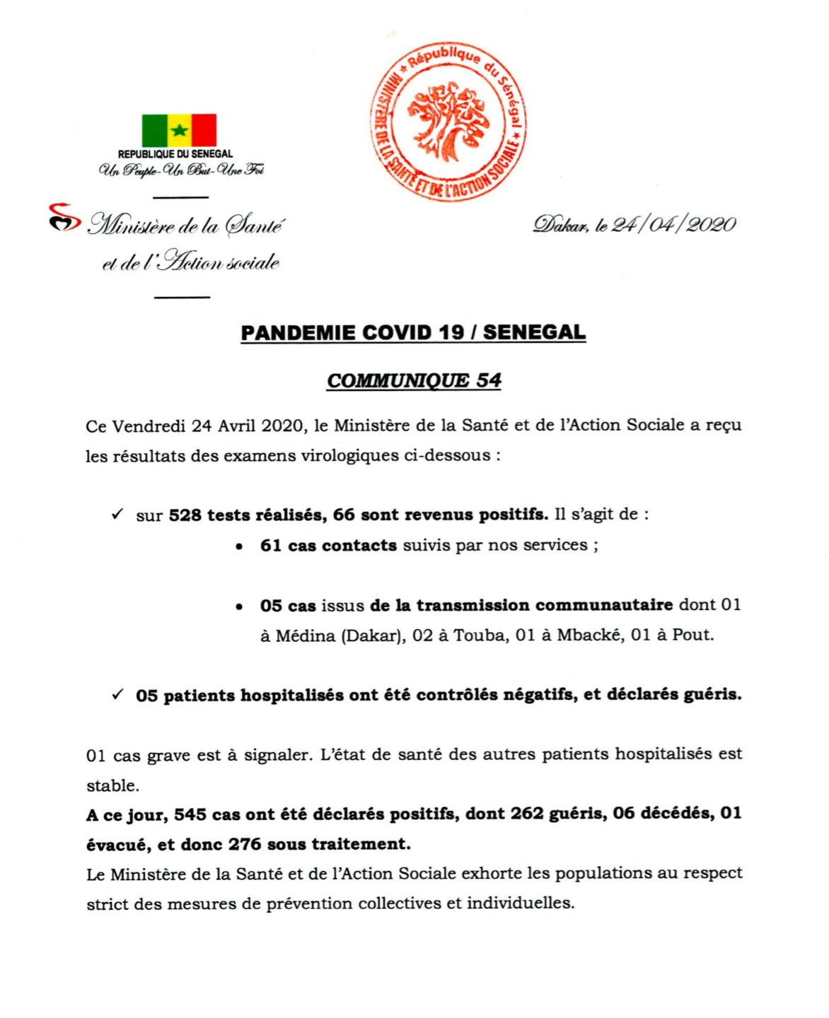 وفي وقت سابق اليوم أعلنت وزارة الصحة السنغالية، عن تسجيل 66 حالة إصابة جديدة، ليرتفع عدد المصابين في البلاد إلى 545 حالة.