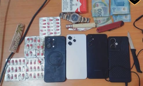 وأضافت الشرطة أنه تم ضبط العصابة وبحوزتها كمية من حبوب لاريكا المهلوسة وكمية من حبوب لفترين وعلبة لفايف من لارزين.
