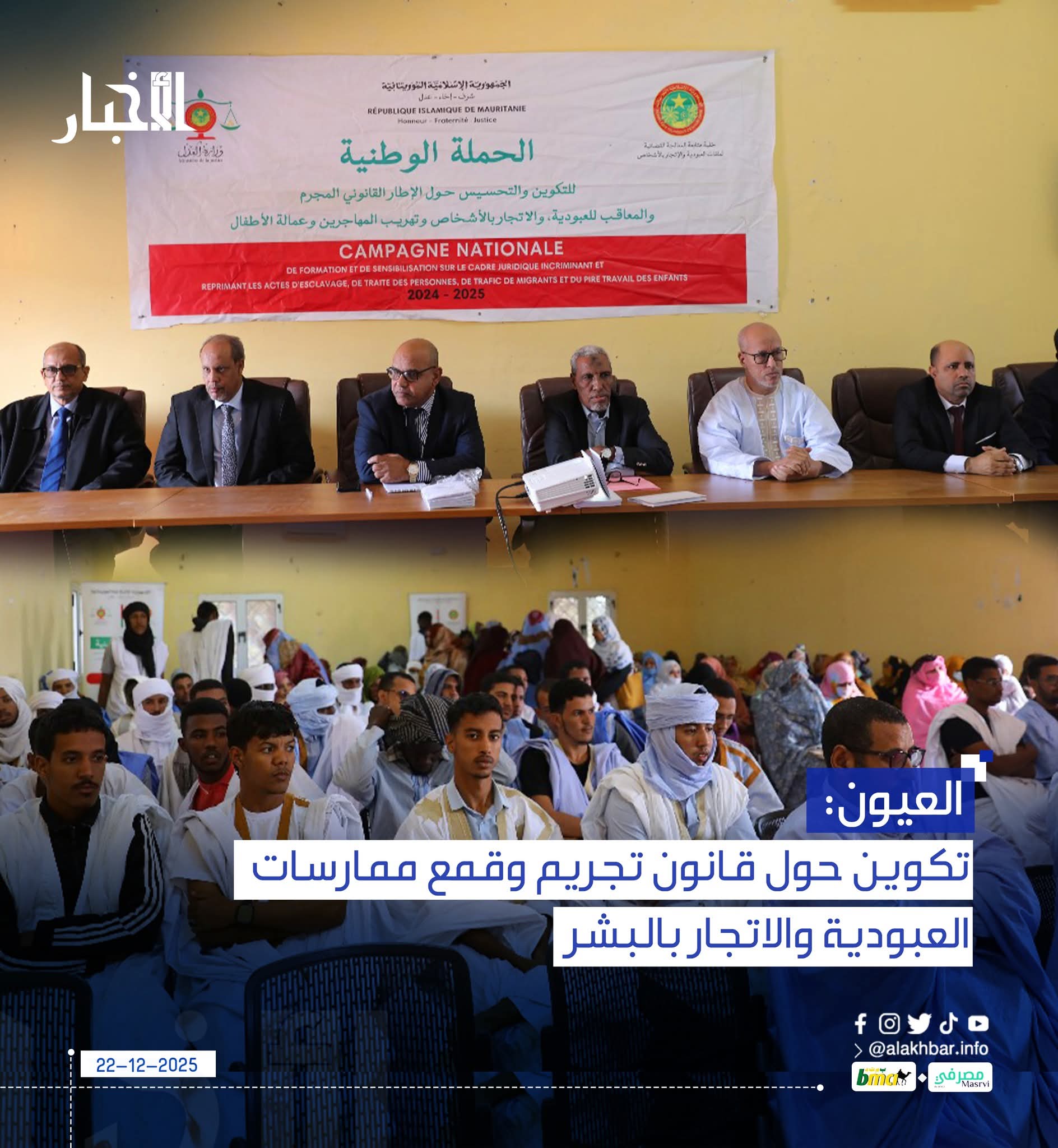 وأضاف المنسق أن التوجه يهدف إلى تكوين الطلبة وتحسيسهم حول الترسانة القانونية التي سنتها موريتانيا في مجال محاربة العبودية والاتجار بالأشخاص وتهريب المهاجرين.