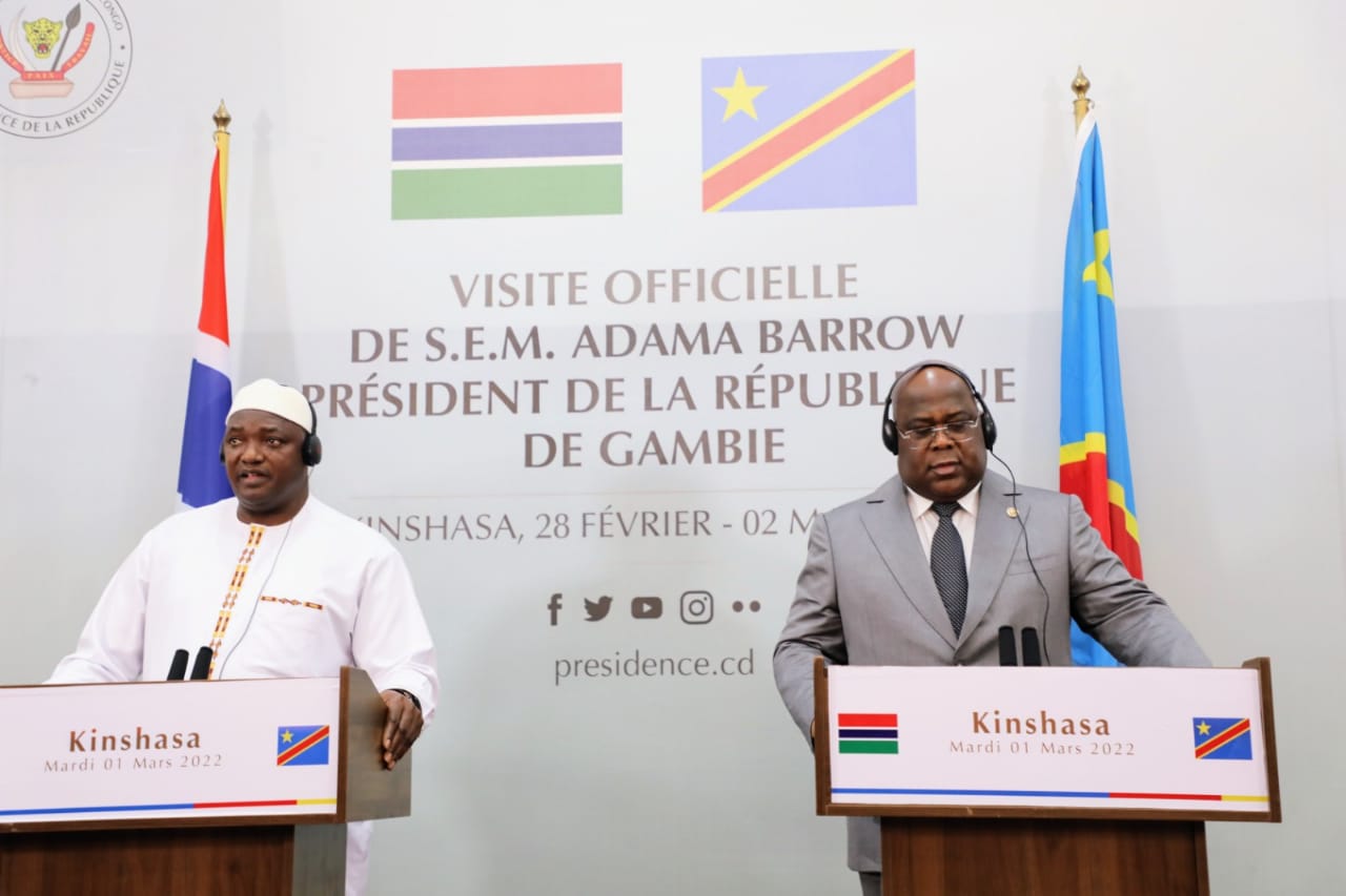 جاء ذلك خلال مؤتمر صحفي مشترك اليوم في القصر الرئاسي بكينشاسا بين رئيسي البلدين، تتويجا لختام زيارة من 48 ساعة، قام بها الرئيس الغامبي للكونغو الديمقراطية.