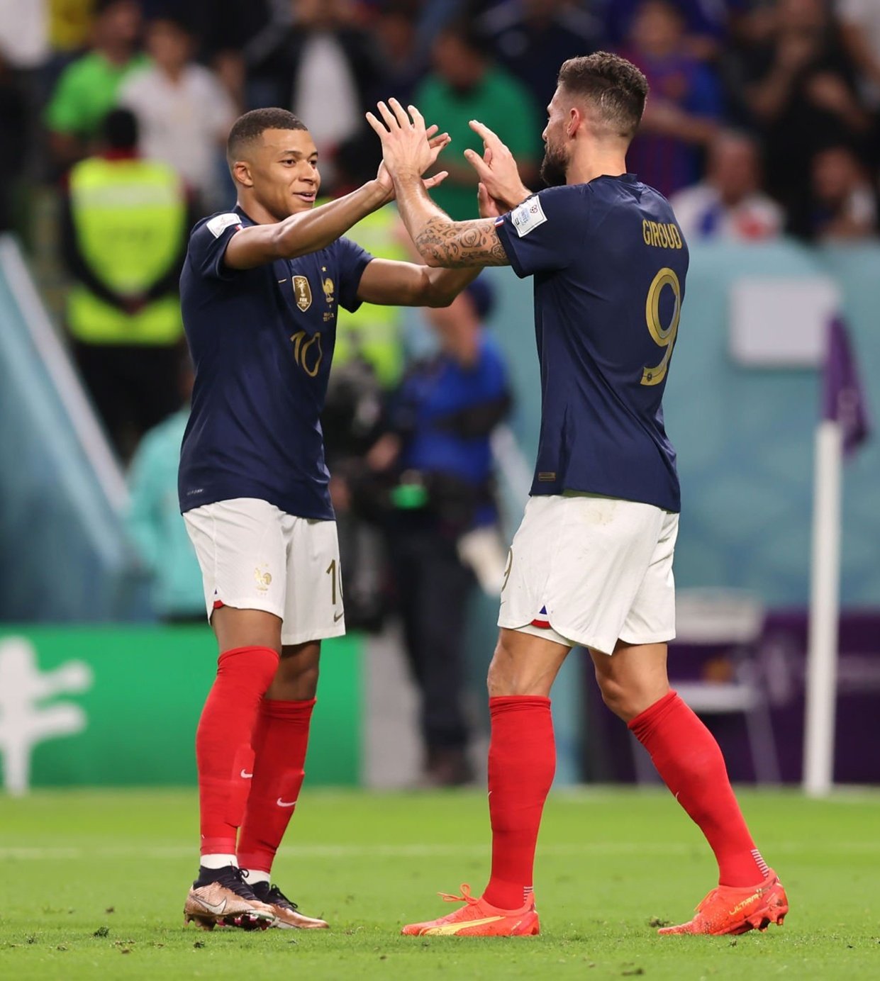 وخلال شوط المباراة الثاني سجل كيليان مبابي أول أهدافه في مونديال قطر والثالث للمنتخب الفرنسي، وفي الدقيقة 71 أحرز أوليفيي جيرو ثاني أهدافه في المباراة والهدف الرابع لفرنسا على إثر عرضية من مبابي.