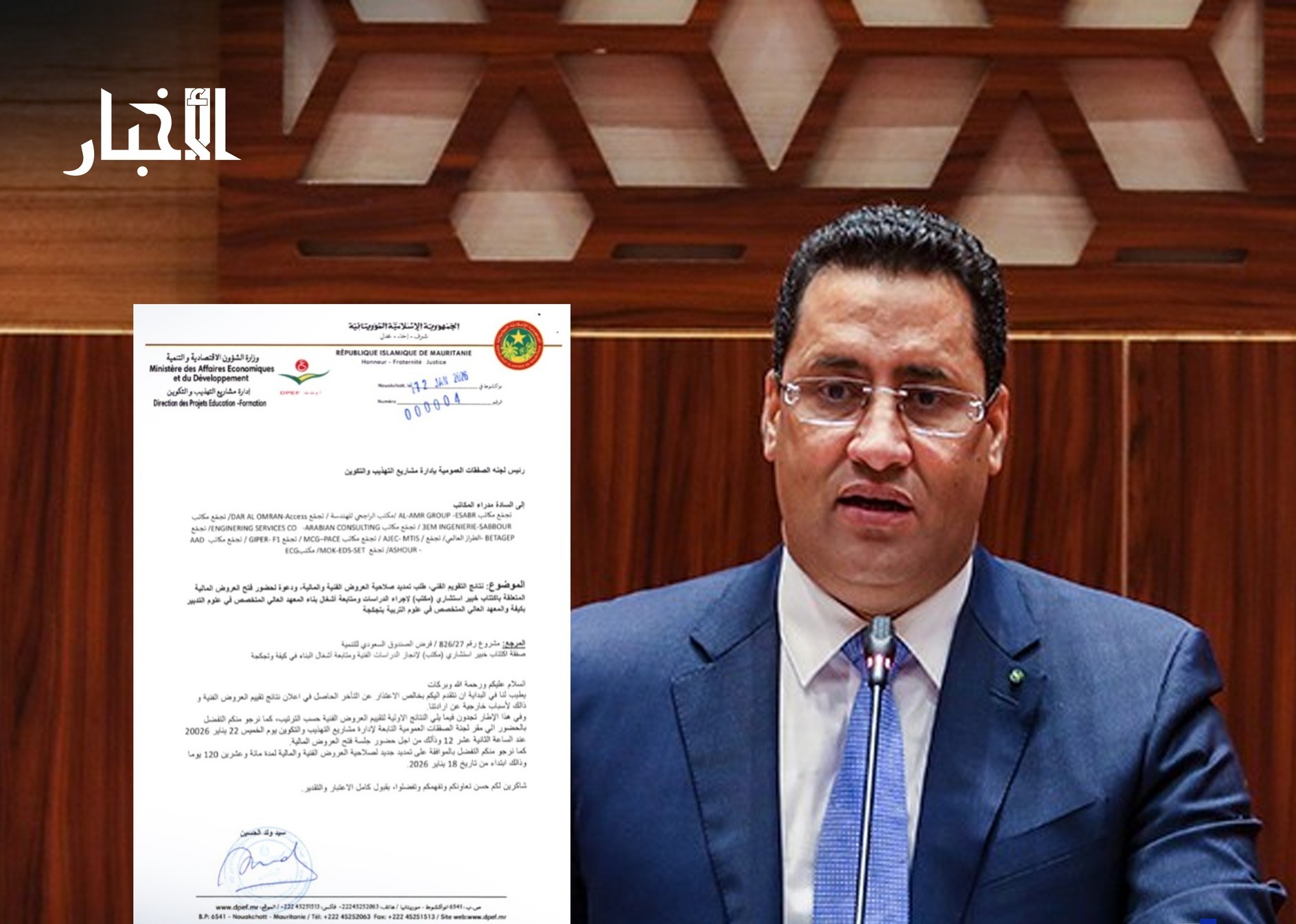 وأورد ولد اجاي التعاقد مع هذه المكاتب لإنجاز الدراسات الفنية وملفات المناقصات المتعلقة بمعهد المحاسبة والأعمال في كيفة، والمعهد العالي للمهن التعليمية في تجكجة ضمن تعداد ما أنجزته الحكومة من التزاماتها خلال 2025.