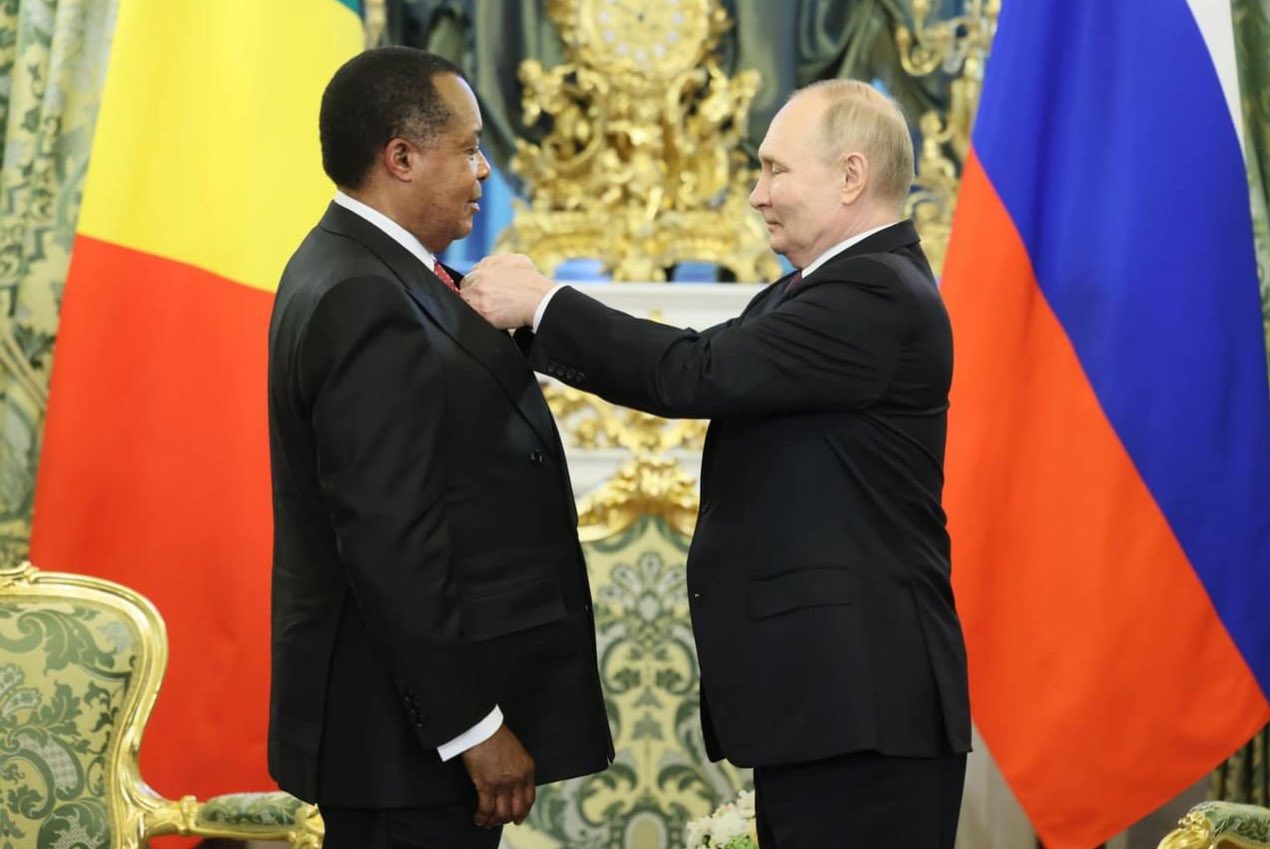 الأخبار (نواكشوط) – منح الرئيس الروسي فلاديمير بوتين، رئيس الكونغو برازافيل دينيس ساسو نغيسو “وسام الشرف لمساهمته في تطوير وتعزيز العلاقات بين البلدين” التي يحتفي الطرفان بمرور 60 سنة على إقامتها.