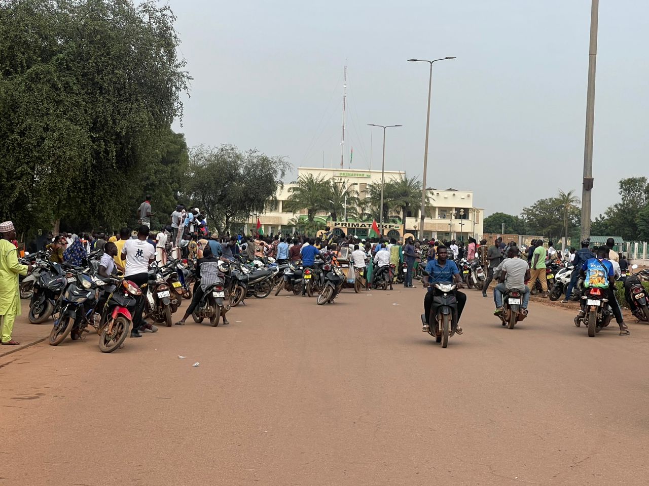 وعلى إثر ذلك خرج أنصار النقيب تراوري رفضا لأي تحرك من شأنه إزاحته عن السلطة، وذلك بعد أقل من 24 ساعة على إعلان الجيش تعيينه رسميا كرئيس للجمهورية.