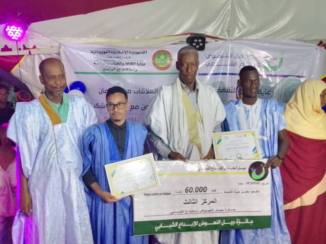 الأخبار (نواكشوط) – نظم جيل النهوض في مقاطعة الرياض بالتعاون مع منظمة “شكرا” حفلا لتوزيع جوائز النسخة الأولى من مسابقة “جيل النهوض للإبداع الشبابي” على مستوى ولاية نواكشوط الجنوبية.