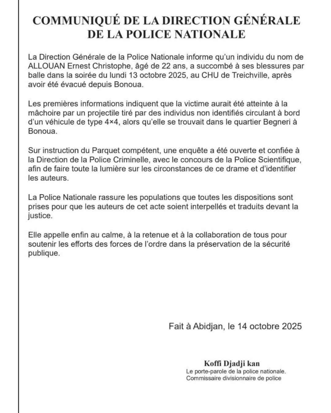 وأوضحت الشرطة في بيان أن الشاب البالغ من العمر 22 سنة “توفي متأثرا بجروحه الناجمة عن طلقات نارية”، بعدما “أصيب في الفك بمقذوف أطلقه مجهولون كانوا يستقلون سيارة رباعية الدفع”، خلال مظاهرات في “بونوا”، معلنة فتح تحقيق في هذه الحادثة.