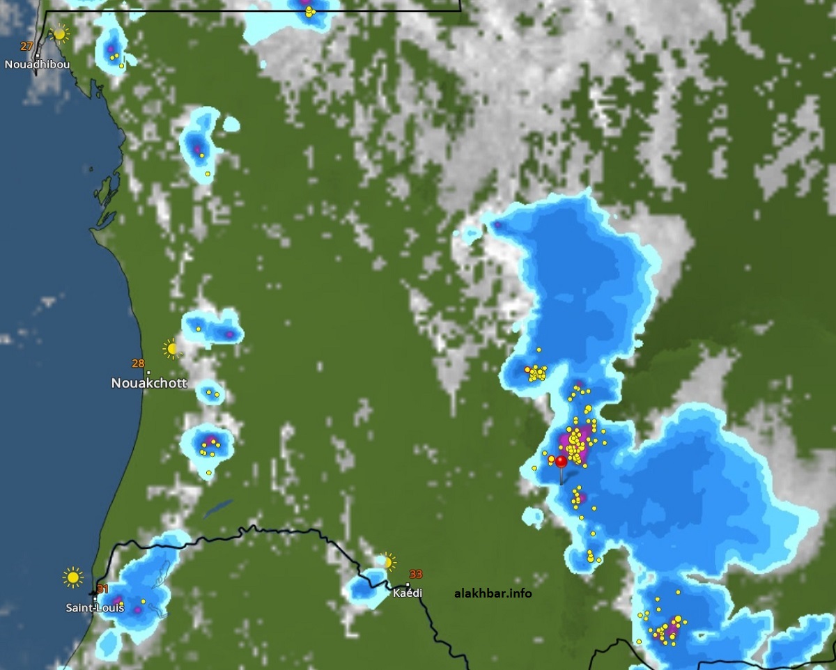 الأخبار (نواكشوط) – تشير آخر معطيات الطقس في أجواء موريتانيا إلى وجود سحب ماطرة على مناطق متعددة من البلاد، ويتوقع بحول الله تعالى أن تؤدي إلى تهاطل أمطار من خفيفة إلى غزيرة على المناطق التي تنتشر فيها.