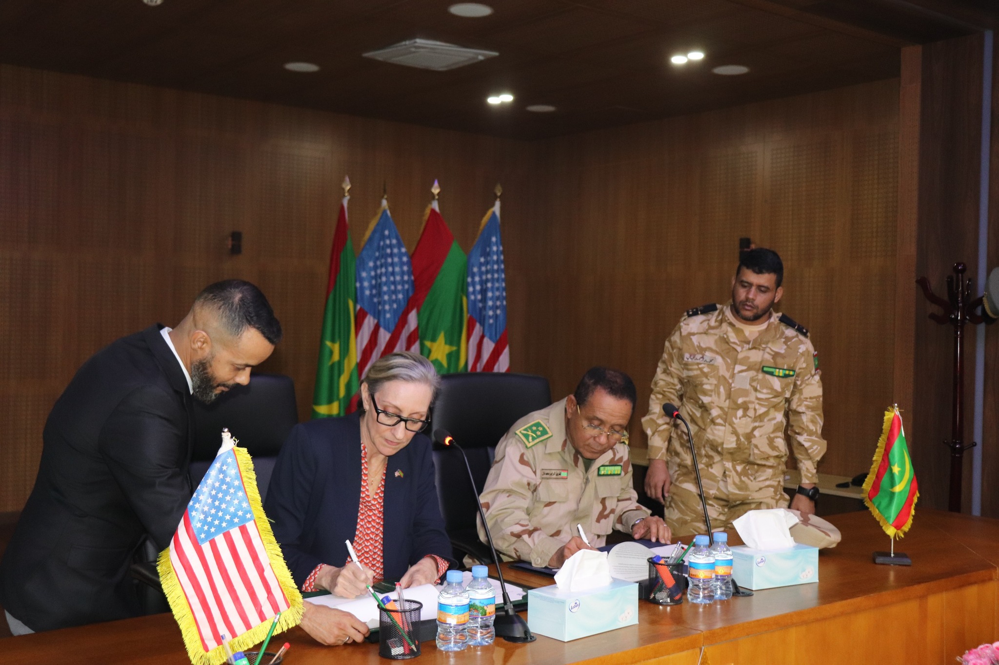 وقالت السفارة في بيان إن القائمة بالأعمال وكالة في السفارة الأمريكية كورينا آر ساندرز، وقع مع قائد الأركان العامة للجيوش الموريتانية، الفريق محمد ولد الرايس، اتفاقيةً بتاريخ 16 ديسمبر المنصرم لنقل معدات عسكرية أمريكية بقيمة 3.6 ملايين دولار إلى القوات المسلحة الموريتانية.