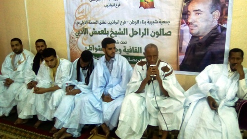 الأخبار(نواذيبو) – أطلق فرع جمعية شبيبة بناء الوطن أول صالون أدبي للشاعر الراحل الشيخ ولد بلعمش تحت عنوان: رحيل القافية وحنين الشواطئ بحضور المندوب الجهوي لوزارة الشباب والرياضة ومندوب وزارة الثقافة والصناعة التقليدية محمد المامي ولد البو وممثل عن عمدة نواذيبو وكوكبة من الشعراء والأساتذة والإعلاميين في المدينة.