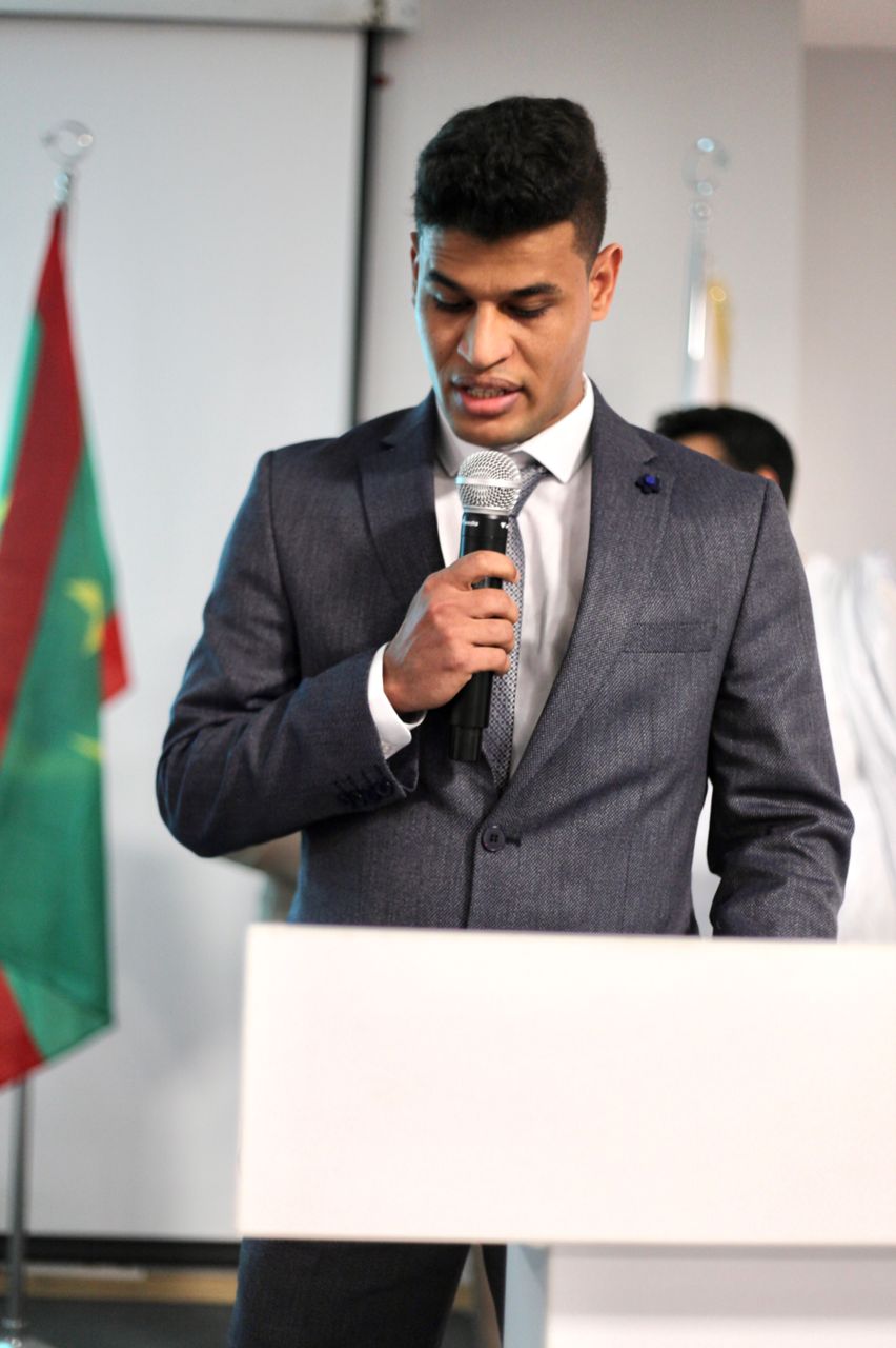 رئيس اتحاد الطلاب الموريتانيين في تركيا محمد الأمين أحمد مولود هنأ كل الموريتانيين بمناسبة الاستقلال، وشكر الحضور على قبول الدعوة لحضور الحفل، كما حث الطلاب على ضرورة التعاون وتحمل المسؤولية اتجاه الوطن من موقعهم الآن كطلاب وغدا كأصحاب مسؤوليات.