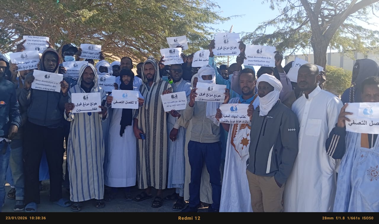 الأخبار (نواذيبو)- احتج عدد من عمال الشركة الصينية “بولي هوندونغ” صباح الجمعة قبالة ولاية نواذيبو، احتجاجا على ما قالوا إنها “عقوبات تعسفية”.