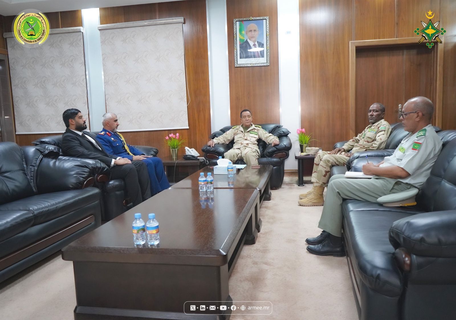 الأخبار (نواكشوط) – أجرى قائد الأركان العامة للجيوش، الفريق محمد فال الرايس، اليوم الثلاثاء في مكتبه بنواكشوط مباحثات مع الملحق العسكري الجديد المعتمد بسفارة الإمارات العربية المتحدة بنواكشوط، والمقيم بالمملكة المغربية العقيد الركن فهد ضاحي حميد النعيمي.