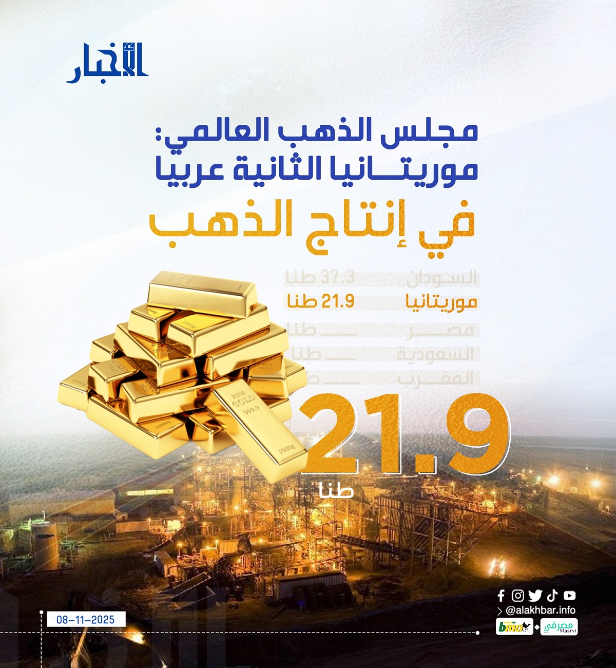 الأخبار (نواكشوط) – كشف تقرير صادر عن مجلس الذهب العالمي حلول موريتانيا في الرتبة الثانية عربيا في مجال إنتاج الذهب، بإنتاجها لـ21.9 طنا من الذهب خلال العام المنصرم.