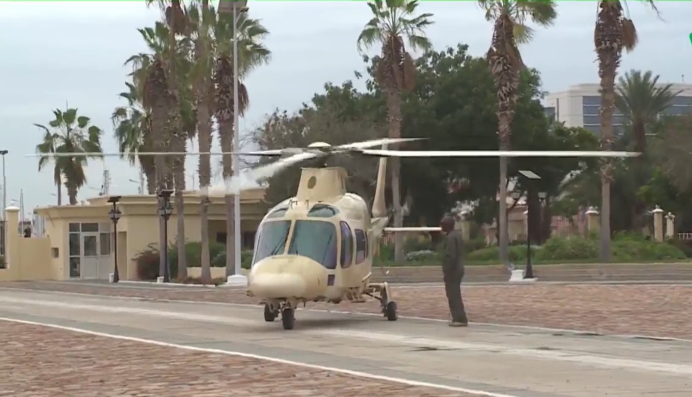 وبث التلفزيون الرسمي، صورا مباشرة لإقلاع المروحية من الفضاء الأماني للقصر الرئاسي.