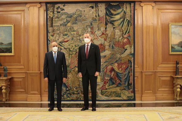 “1- تلبية لدعوة كريمة من صديقه معالي رئيس الحكومة الإسبانية السيد بيدرو سانتشيث، قام فخامة رئيس الجمهورية الإسلامية الموريتانية، السيد محمد ولد الشيخ الغزواني، بزيارة إلى لإسبانيا من 16 إلى 19 مارس 2022، حيث استقبله صاحب الجلالة الملك فيليبي السادس وأجرى لقاء مع معالي رئيس الحكومة الإسبانية، السيد بيدرو سانتشيث.