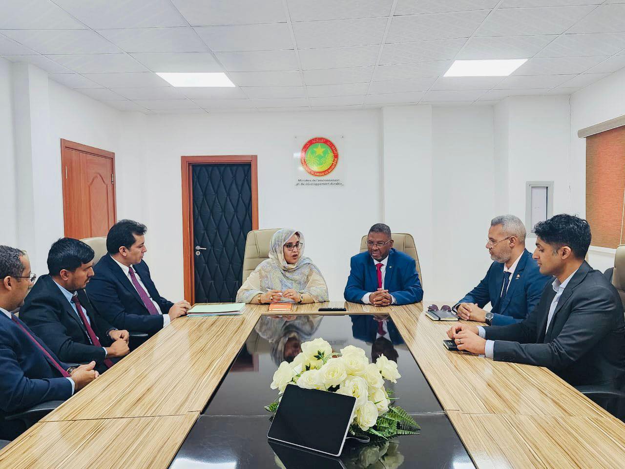 وترأست الاجتماع وزيرة البيئة والتنمية المستدامة مسعود بحام محمد الأغظف، وحضره الوزير المنتدب لدى وزارة الداخلية المكلف باللامركزية، يعقوب سالم فال، ورئيس جهة إنشيري، الشيخ ماء العينين اعبيدي الغرابي، إلى جانب ممثلين رفيعي المستوى عن شركتي تازيازت وMCM، من بينهم المديرون العامون للشركتين، ونائب رئيس مجلس إدارة تازيازت، والمدير القطري لشركة MCM.