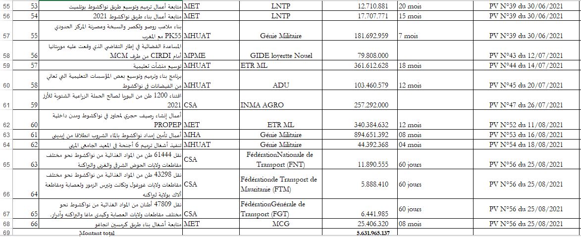 كما حصلت الوكالة الوطنية للدراسات ومتابعة المشاريع على أربع صفقات عبر التراضي، وكان سقفها المالي في حدود 1.5 مليار أوقية.