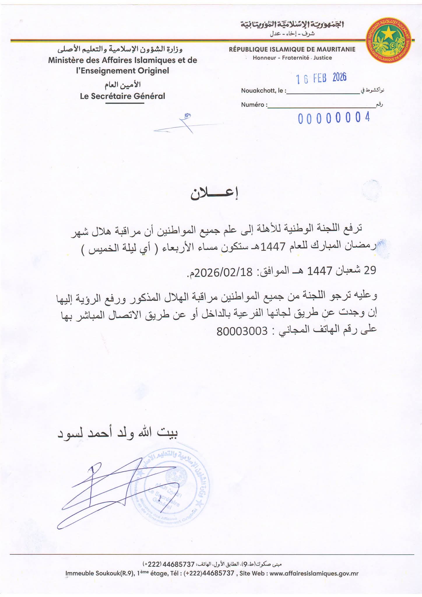 الأخبار (نواكشوط) - دعت اللجنة الوطنية للأهلة المواطنين إلى مراقبة هلال شهر رمضان المبارك مساء الأربعاء (ليلة الخميس) 18 فبراير الجاري.