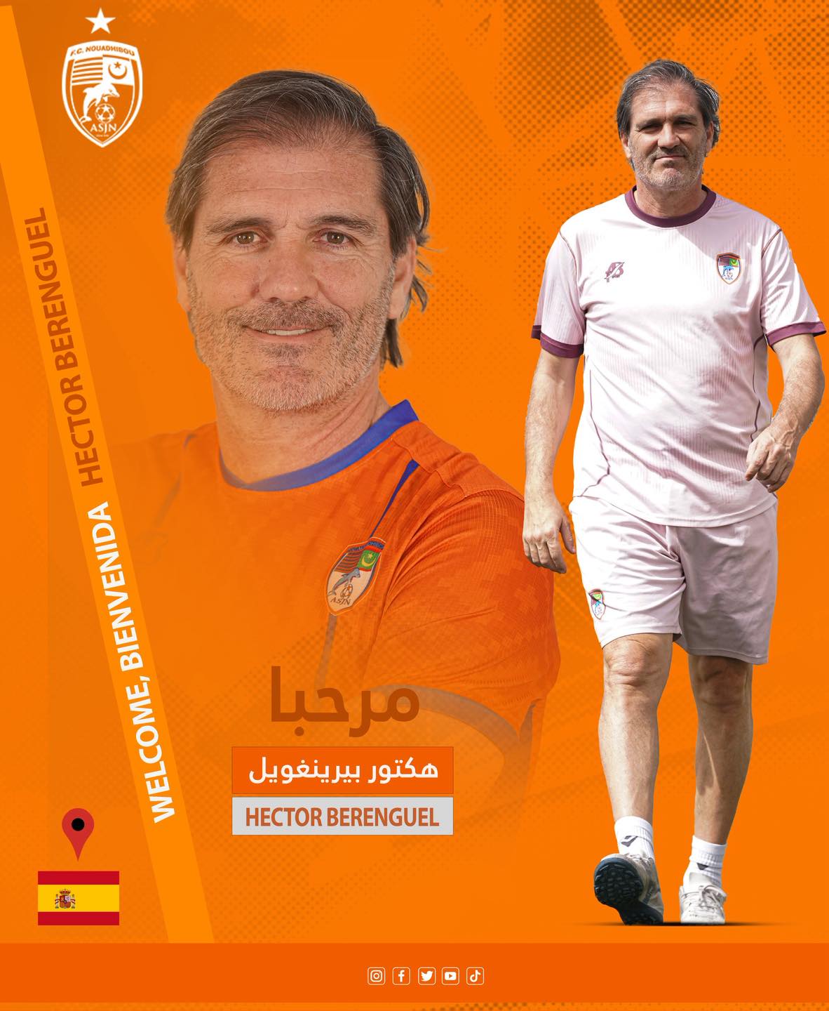 الأخبار(نواكشوط)- أعلنت إدارة نادي اف سي نواذيبو رسميا عن تعاقدها مع المدرب الإسباني هيكتور خيسوس بيرينغال ليشغل منصب مدرب مساعد في الجهاز الفني للفريق الأول، وذلك دعما للجهاز القائم في المرحلة الرياضية المقبلة.